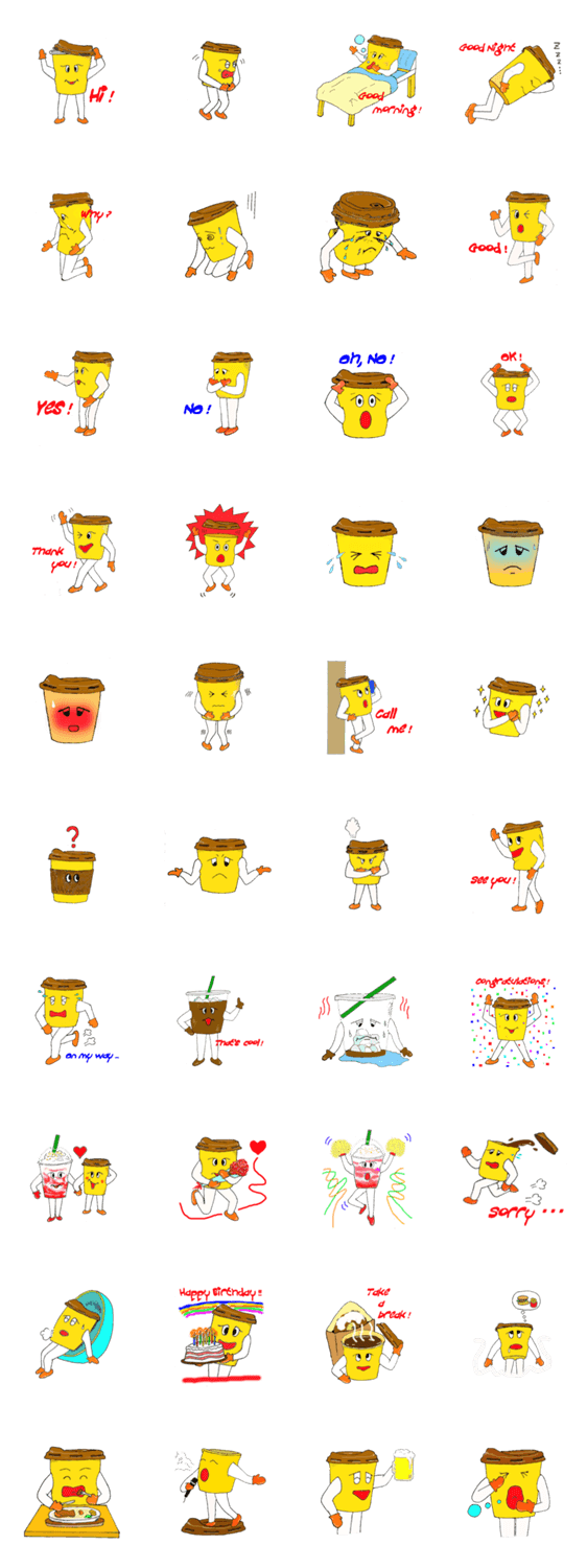 スタンプ説明 今日もいつものようにテイクアウトカップを片手に楽しくお話そのカップがスタンプになった。彼も会話に参加したいって。。。