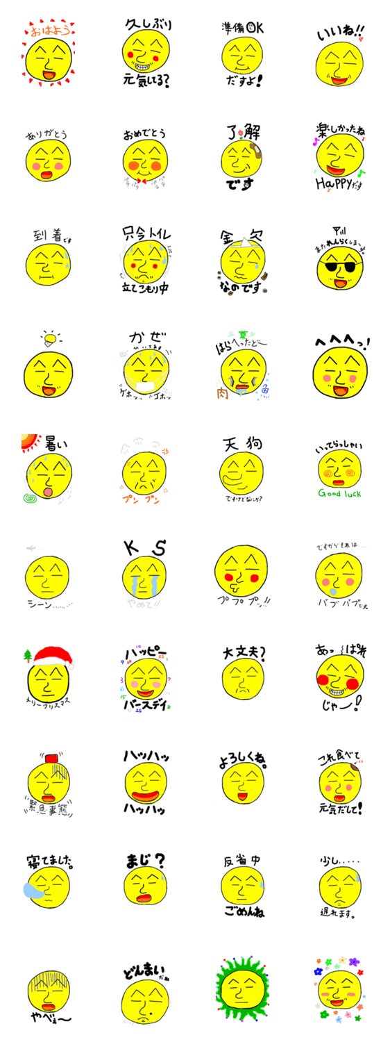 スタンプ説明 小学6年生の時かいていたものを10数年の時を経てスタンプにし、そんな たこし のカンジョー表現を喜怒哀楽に最大限に表しました。