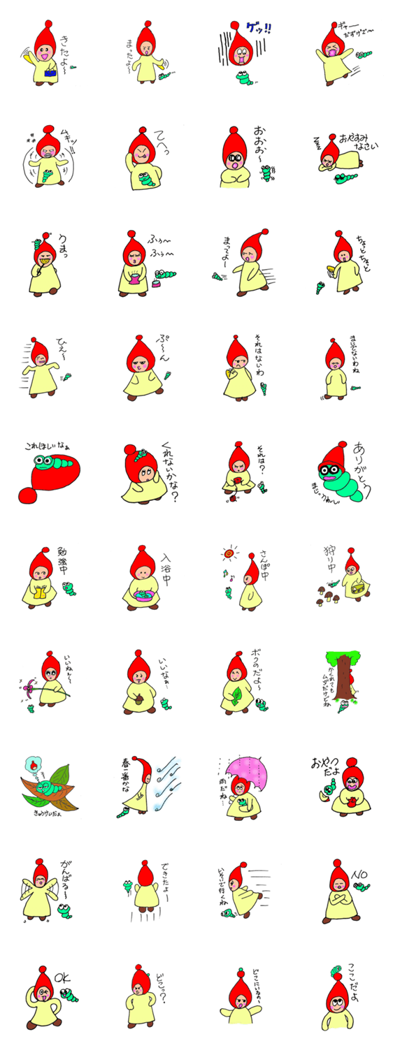 スタンプ説明 妖精の帽子ちゃんと青虫くんの日常