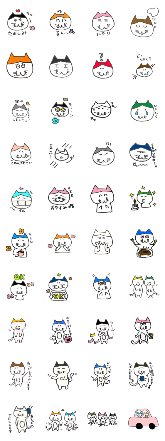 スタンプ名 カラフル帽子にゃんこ