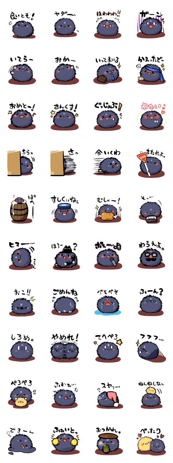スタンプ説明 あのぞうきん狐・ゆきやが毛玉になって登場!!幸福を呼ぶというケセランパサランのつもりになって表情豊かな毛玉であなたのルームをふるもっふにしませんか??