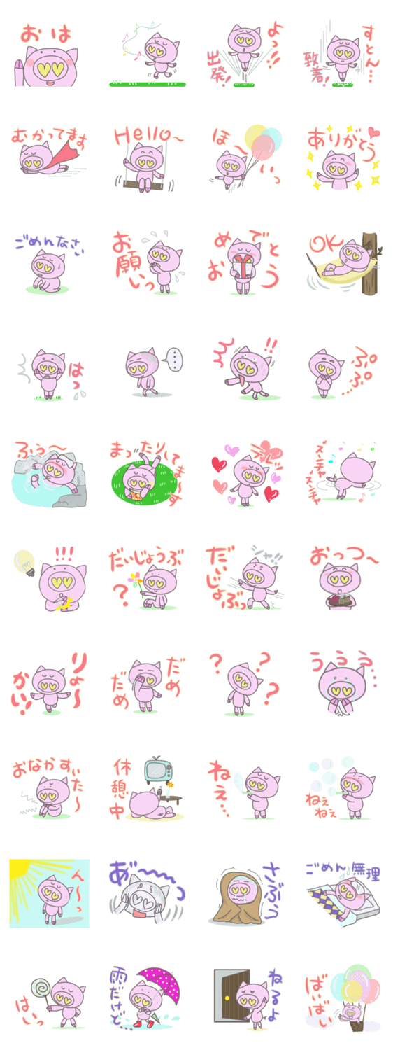 「ぶーすけ」の、ほのぼのスタンプです。チャームポイントは、し・あ・わ・せの黄色いハートの形の鼻の穴!!