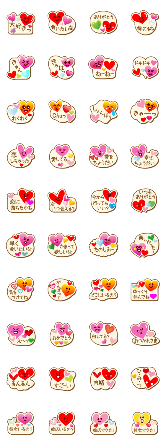 スタンプ説明 ラブラブなカップル・夫婦・お友達とのやりとりに!たくさんのハートがゆるっとかわいいハートスタンプ第一弾です。