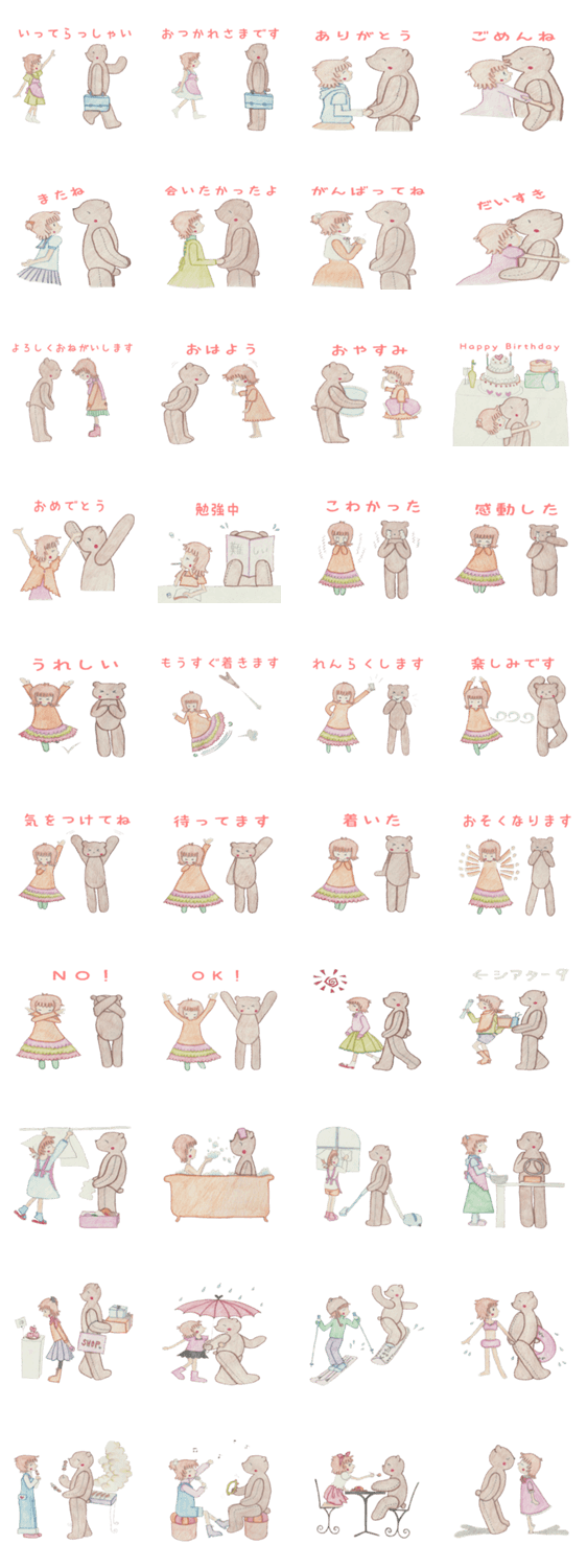 スタンプ説明 くまたんと女の子の日常生活を描いたスタンプです