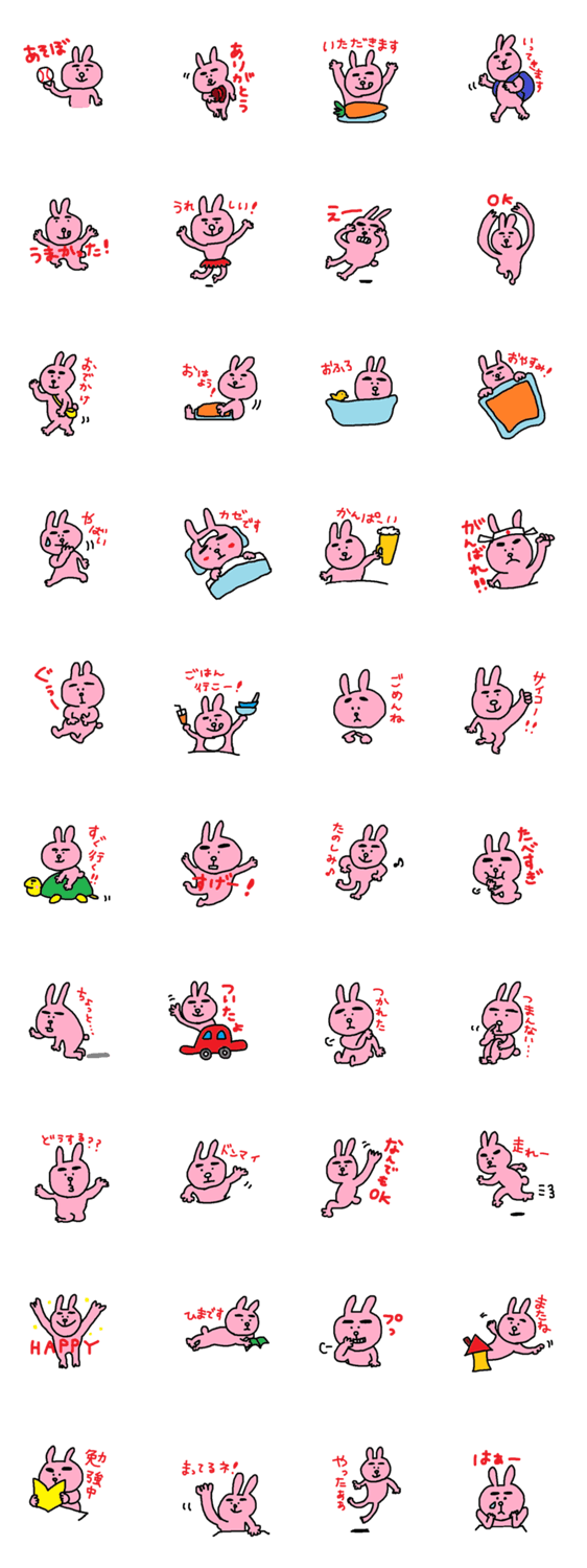 スタンプ説明 まゆげが太くてかわいい。誰にでも優しいうさぎさんです。
