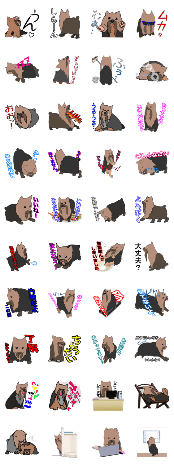 スタンプ名 陽気なヨーキーバージョン2 日本語第2弾