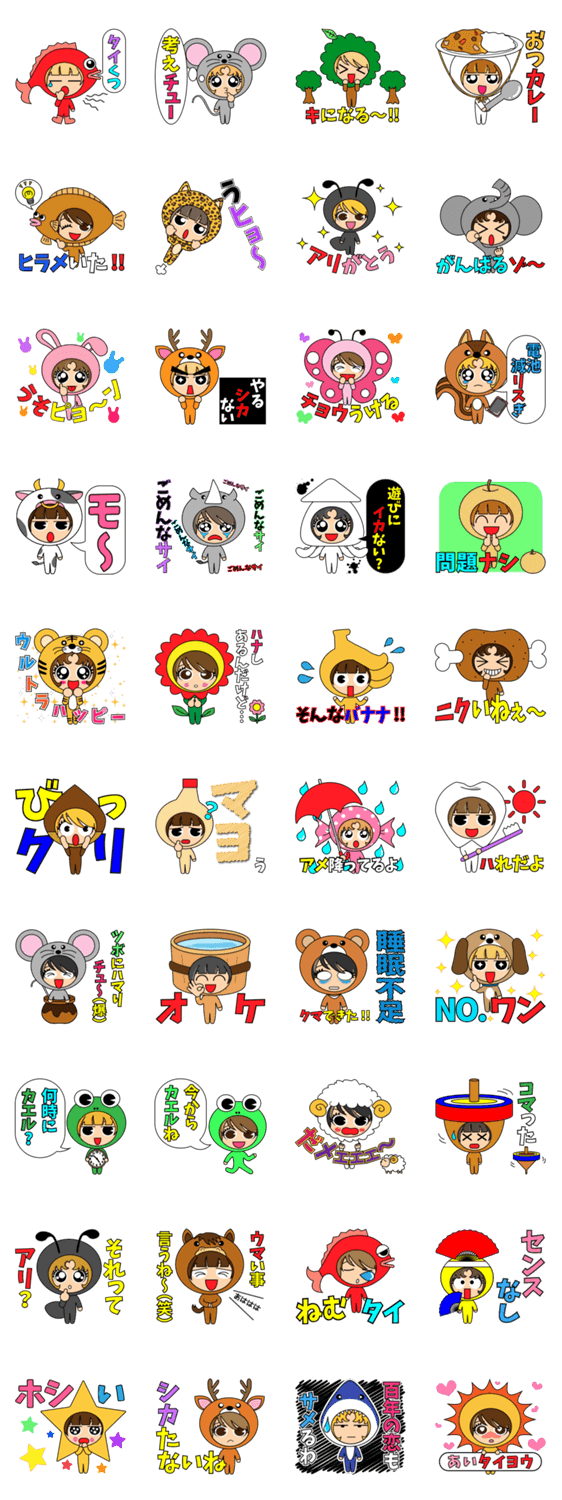 スタンプ説明 着ぐるみシリーズ第1弾!!着ぐるみ女子がダジャレに合わせて可愛く変身♪
