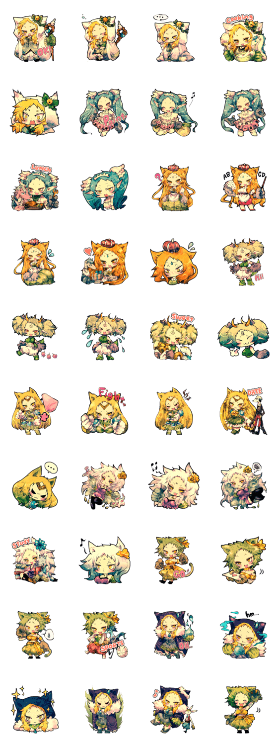 スタンプ説明 ツンデレ魔法使い、女王様やエルフ、モンスター娘などゲームキャラクター風の娘達とその友達です。一枚絵のようなスタンプからデフォルメ表情まで各種をお楽しみ下さい。
