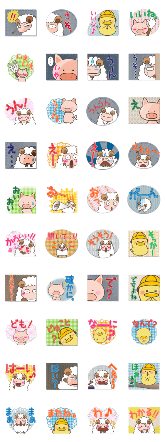 スタンプ説明 あいづち・よく使うひとことのスタンプです。50音順に並べていますので、とっさのひとことも探しやすいですよ。