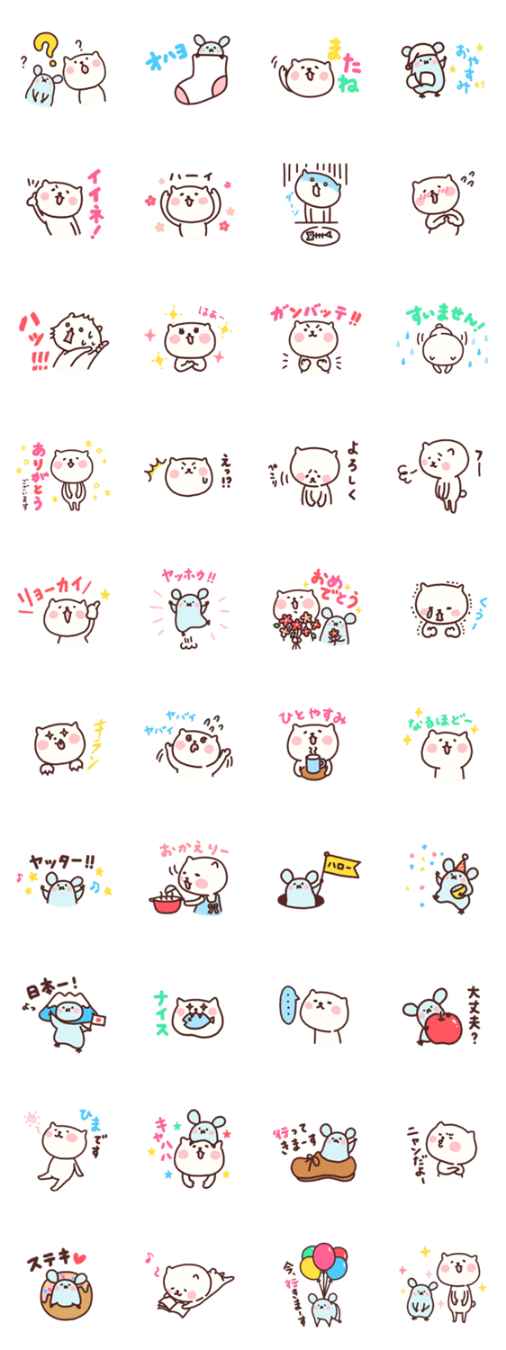 スタンプ説明 仲良しのネコとネズミのスタンプです。ぜひ使ってみてください!!