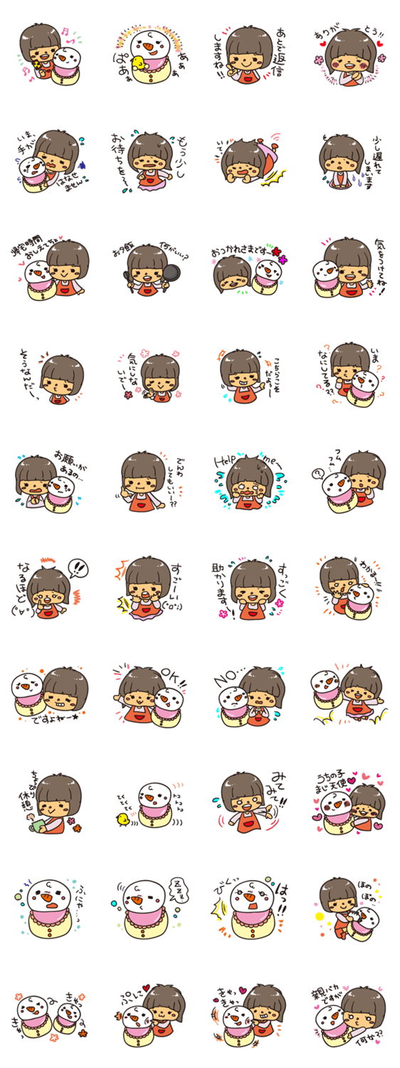 スタンプ名 ゆきだるまと女の子(子育てママ編)