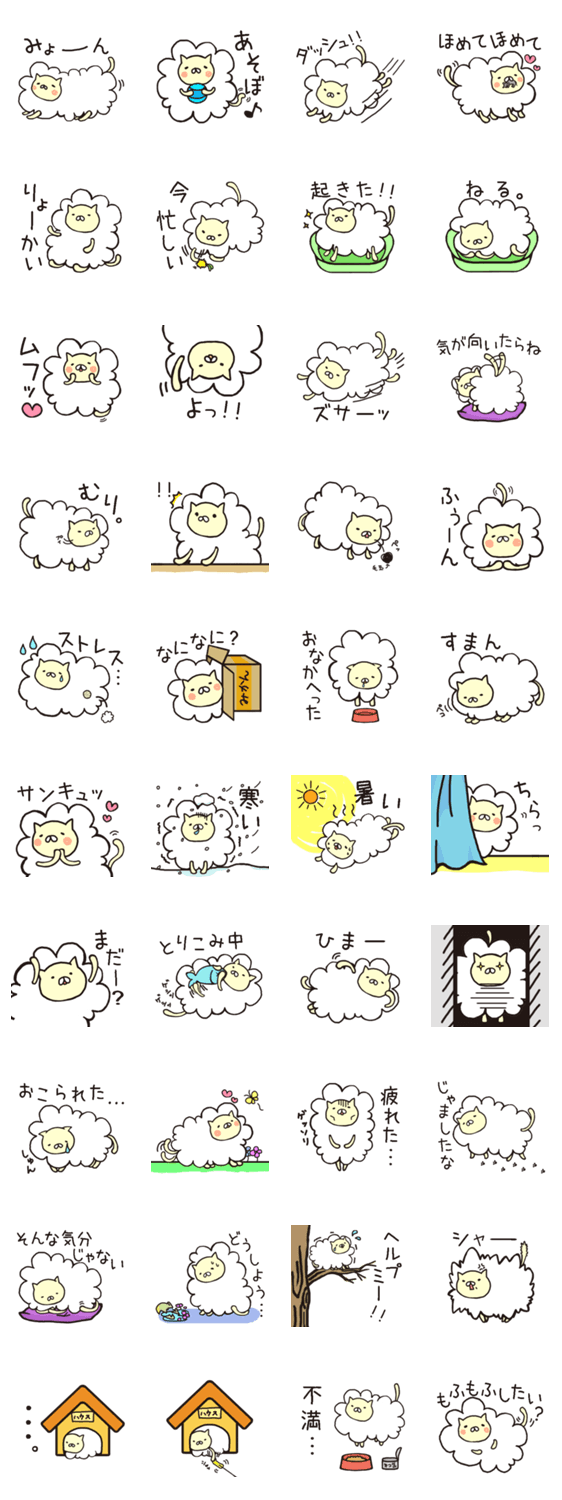 スタンプ説明 ふわふわでもふもふな ましゅまろぬこのゆるーい癒しのスタンプです♪
