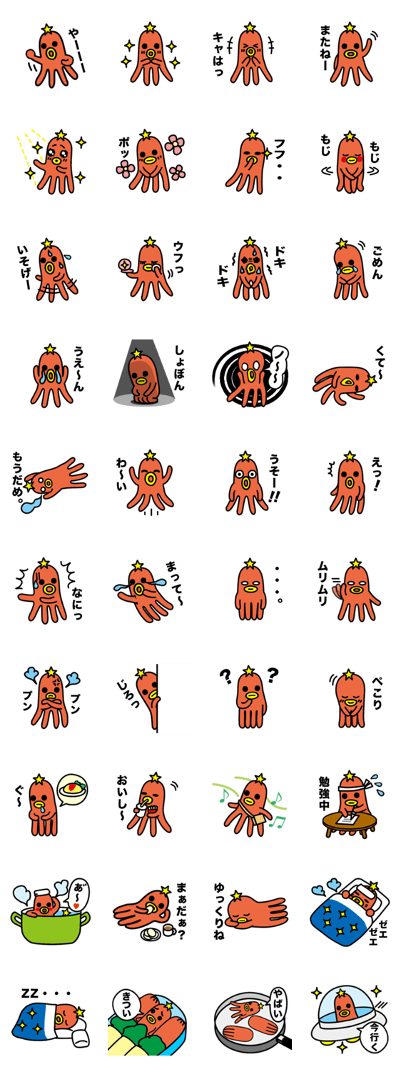 スタンプ説明 お弁当のソーセージにそっくり。宇宙からやってきたタコぽんでーす。