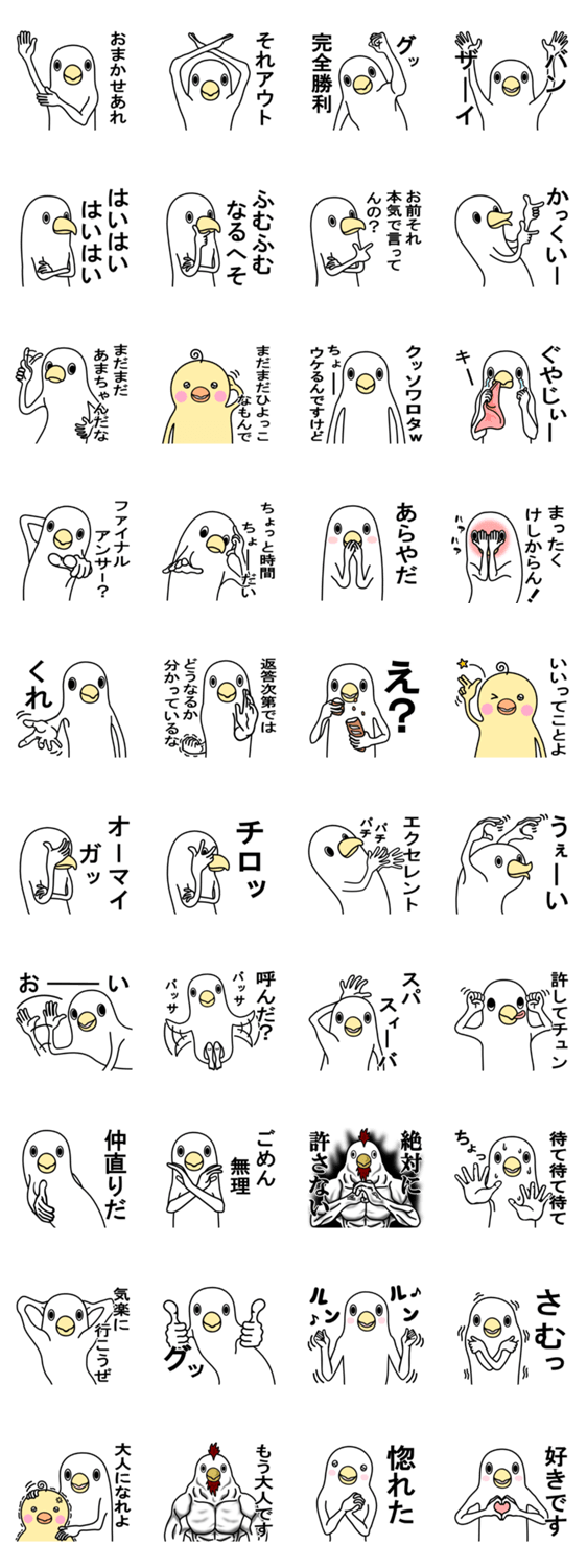 スタンプ説明 軽くうざい白いとりとその仲間たちのスタンプです。