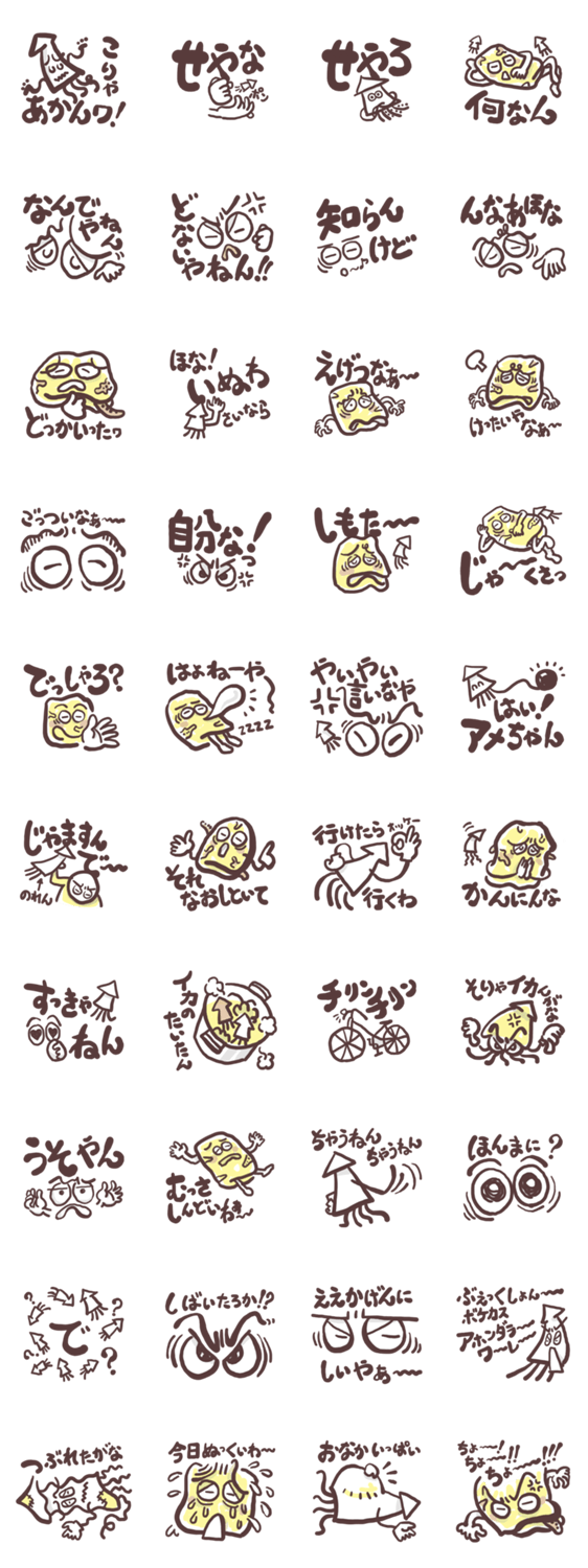 スタンプ説明 粉もんバンザイ!関西バンザイ!イカ焼きはB級グルメのチャンピオン!!!!