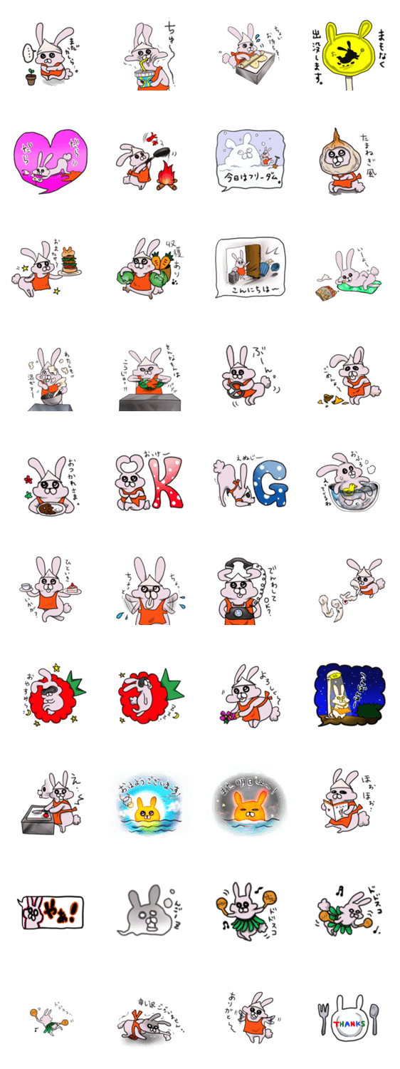 スタンプ説明 自称コック、ウサギのぴょんす先生のゆるーいスタンプ。