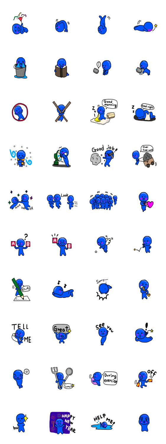 スタンプ説明 青いやつが帰ってきた!青いあいつがまたまたうごいています。第二弾です。今回は大量発生も!!?
