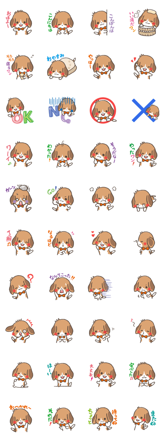 スタンプ説明 犬のビーグル、ちび太です。ゆる〜い気持ちを伝えたいときに使ってください。
