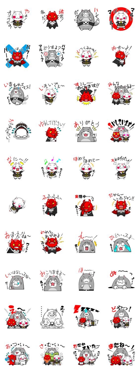 スタンプ説明 ある日ニャンは目が覚めるとヒーローになっていた。悪事を働くドクターとの戦いは、ほのぼのとしている、戦闘員Aとは大の仲良しで、普段は3匹でよくつるんでいる。