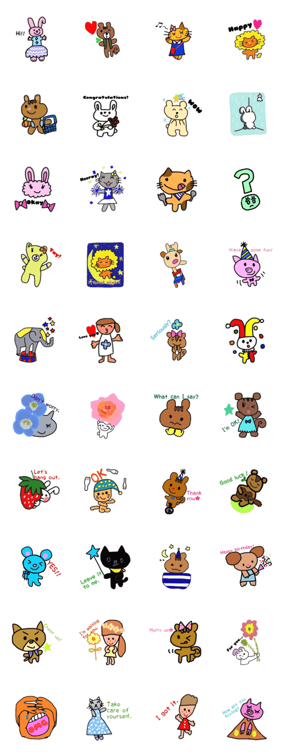 スタンプ説明 ちっちゃな仲間たちのいろいろな表情スタンプです。第二弾は英語版。英語で気持ちを伝えちゃおう。