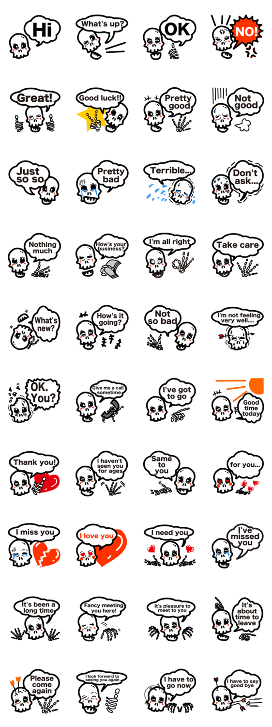 スタンプ名 骨と吹き出し 英語挨拶
