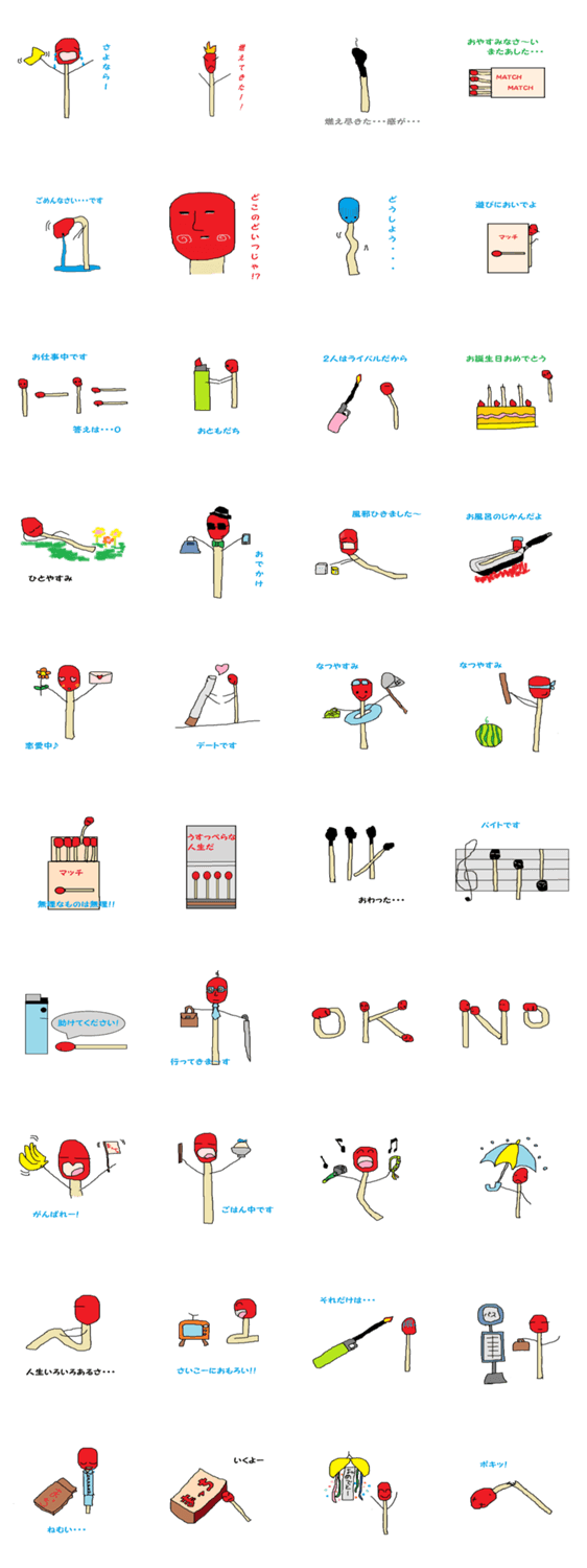 スタンプ説明 今はあまり見かけないマッチ棒ですが、それなりに気ままにやってます。使ってやってください。