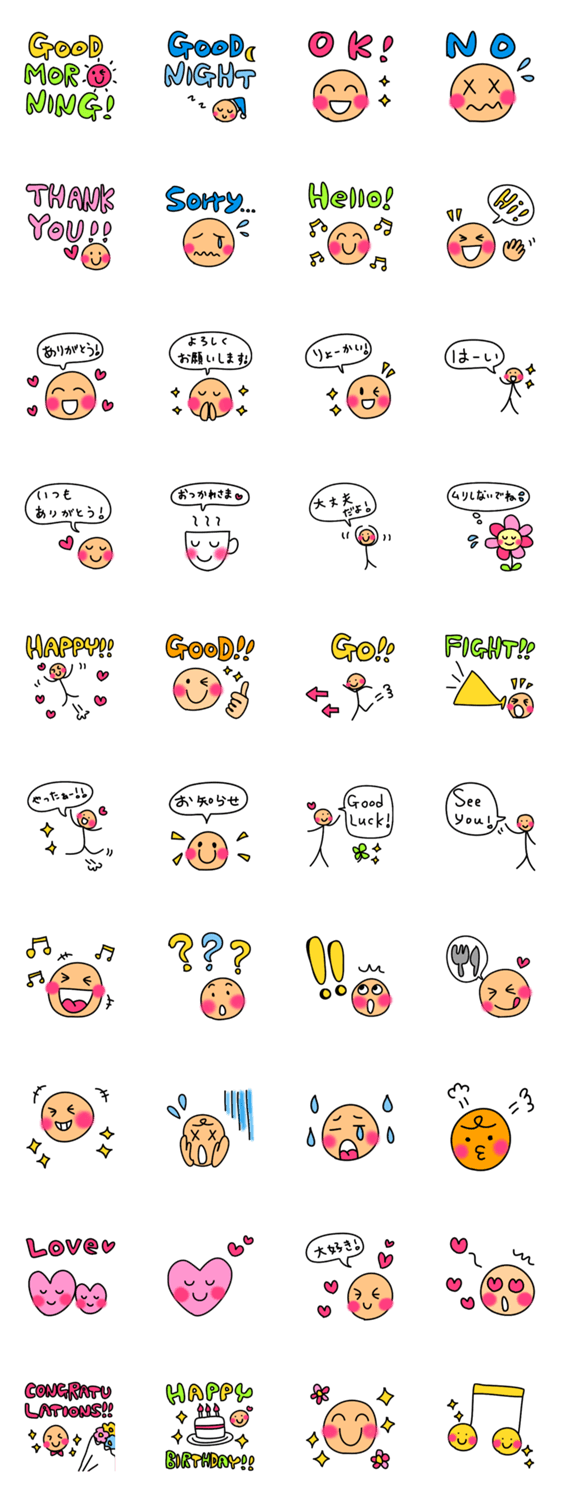 スタンプ説明 日常でよく使う表情や言葉を集めた、誰でも海外でも使いやすい基本のスタンプセットです♪