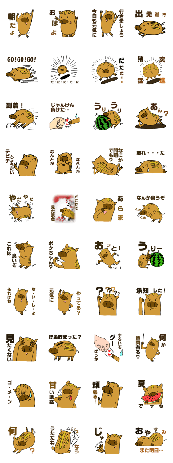 スタンプ説明 猪の子供瓜坊の物語です。気楽に使えるスタンプです。