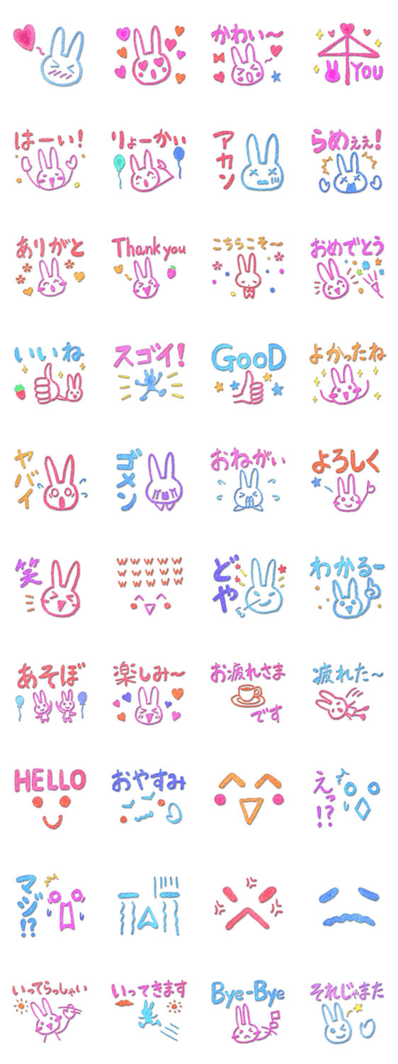 スタンプ説明 キラキラ光るラメ入りのペンで書いたような珍しいスタンプです。会話で使いやすい言葉を集めました。