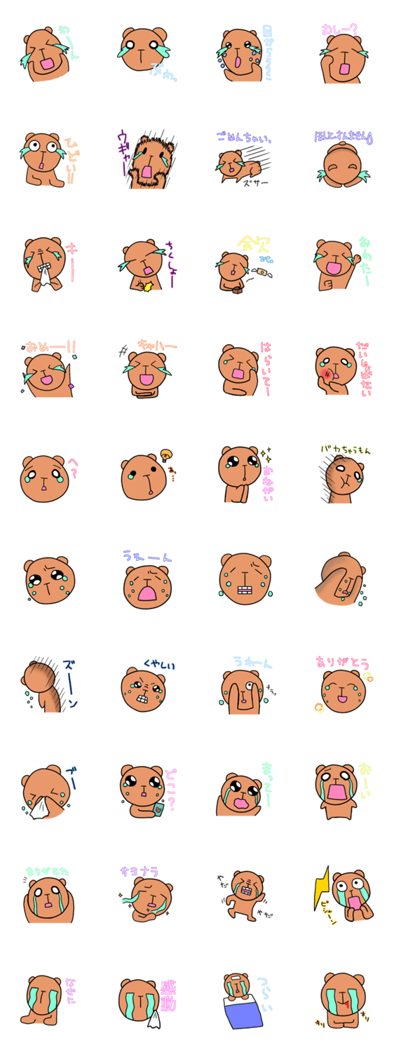 スタンプ説明 嬉しい時も悲しい時も常に泣いているくまさんのスタンプです。