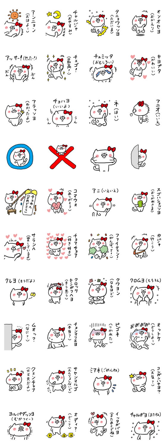 スタンプ説明 韓国語の日常会話スタンプ。ハングルを話す女子ねこです。好評「うまうまのぐるぐる」シリーズ。