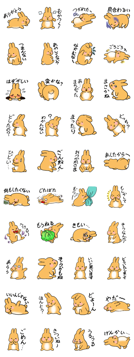 スタンプ説明 ずんぐりうさぎはゆったり過ごしてます。