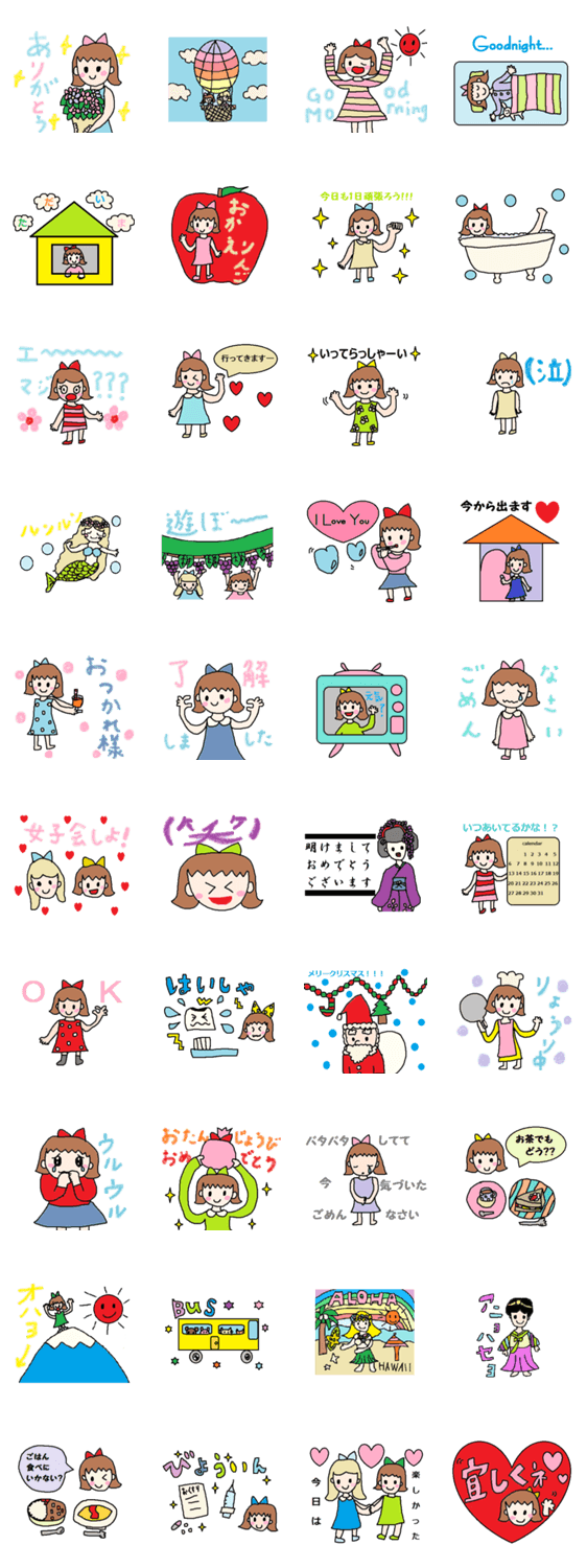 スタンプ説明 彼女の名前はネネです。彼女は人懐っこい性格です。