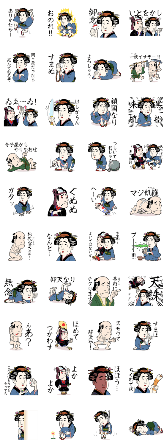 スタンプ説明 表情ゆたかな浮世絵ちゃんその2です