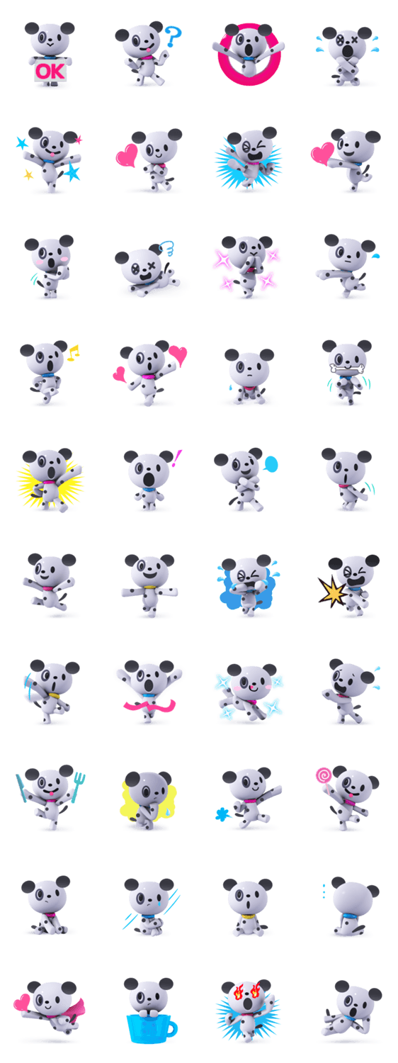 スタンプ説明 チビキャラ犬のダルメシアン君を使って、お願いしたり、おねだりしたり、可愛く使ってみよう!