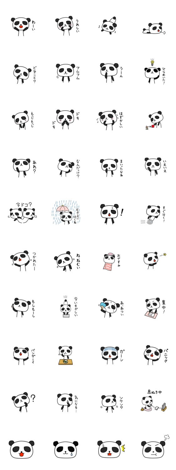 スタンプ説明 照れ屋なパンダ「リン」のスタンプ第2弾。