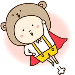 スタンプ説明 くまになりたい、かわいい男の子のスタンプ、かたむすびゆるたろうの第二弾!!くまになりたい、かわいい女の子も初登場!