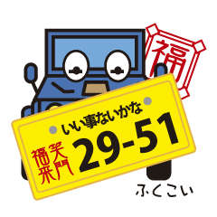 スタンプ説明 くるま好き集合!街に 海に 川に 山に 神出鬼没。「どこにでも連れってって」って!!語呂合わせのナンバープレートも楽しいよ!!