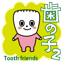 スタンプ説明 奥歯ちゃんと前歯ちゃんに、新しいお友達が!歯医者さんから来たのは、キラキラ金歯のあの子に、ちょっと不思議な差し歯の子。インプラントたちはどこに行くのかしら?