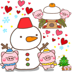 冬にぴったりなスタンプを全部集めました。毎年使える通年verのクリスマス・年賀スタンプもあります。今年の冬はぶたさんに決まり♪【作:いしいともこ】