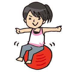 スタンプ説明 バランスボールのインストラクターのREINAちゃんのレッスンスタンプです。バランスボールで体を鍛えよう!