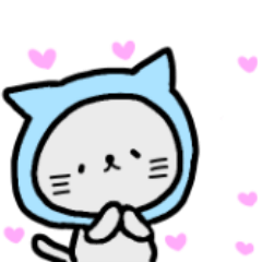 スタンプ説明 ずきんシリーズ第3だん♪水色のずきんをかぶったにゃーです☆