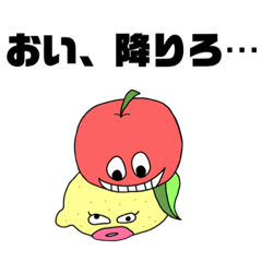 スタンプ説明 カラフルな虹色のくだものちゃん達の、使い道があるようでないようなスタンプその3!りんごとレモン多め!2人は仲良し!