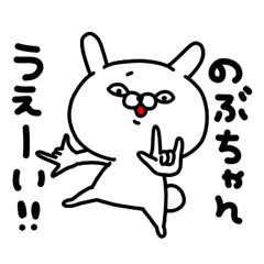 スタンプ説明 のぶこ、のぶえ、のぶよ、のぶみ…。全国の「ノブ」ちゃん専用の名前スタンプです。デカ文字&日常会話の基本セット。(ちょっぴりうざいうさぎ