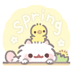 スタンプ説明 「お餅と犬と人の間で生きるポメラニアン」もちのスタンプ。春のごあいさつバージョンです。
