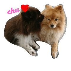 スタンプ説明 仲良しポメのチロルとチョコです(*´∇`*)