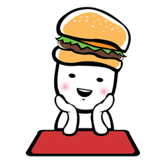スタンプ説明 Chibie loves hamburger so much it's become a way of life for him. Hamburger hat shows the his emotions. Yam is chicken nugget.(Chibie's pet.)