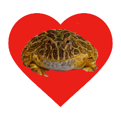 スタンプ名 ベルツノガエルのべるさん (ハートマーク)