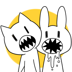 スタンプ名 ギザギザな歯のうさぎ&ねこ