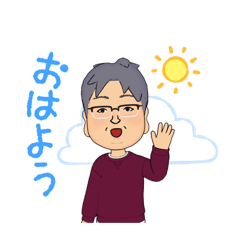 スタンプ説明 お金持ちになれる相の特徴な「福耳」を持つ男の人のステッカーです。40代,50台,60代,70代のぼっちゃりしてるメガネをかけてるお父さん,男の人,おじいさん,福耳おっさん